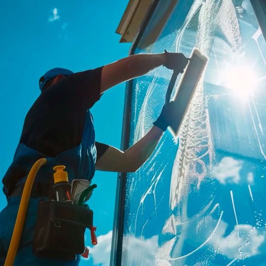 Limpieza técnica de vidrios en altura, accesos y ventanales con equipos seguros, productos específicos y acabado sin residuos ni empañados.